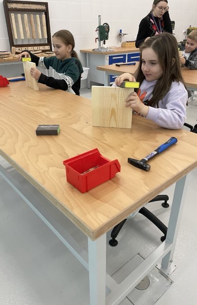 Uczniowie klasy 3a na warsztatach technicznych zwi±zanych z obróbk± drewna w Ma³opolskim Centrum Nauki Cogiteon.