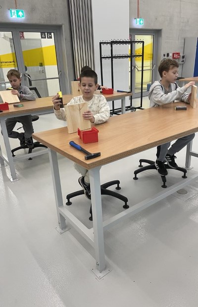 Centrum Nauki Cogiteon Uczniowie klasy 3a na warsztatach technicznych zwi±zanych z obróbk± drewna w Ma³opolskim Centrum Nauki Cogiteon.