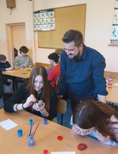 We dniach 15-16 kwietnia 2025 roku, klasy 7a,7b oraz 8a i 8b uczestniczy造 w warsztatach wielkanocnych. Uczniowie wykorzystuj帷 naturalne pigmenty barwili tradycyjne pisanki na 鈍i皻a wielkanocne.