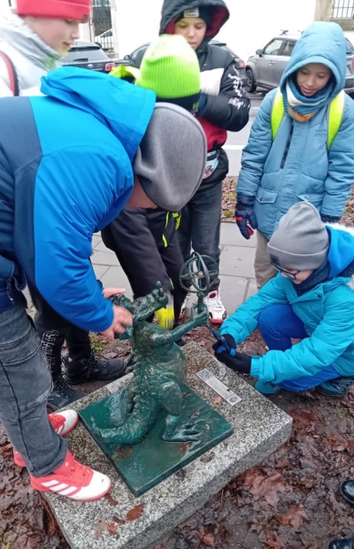 Spacer klasy 5b ze smokami Uczniowie klasy 5b podczas spaceru po Krakowie.