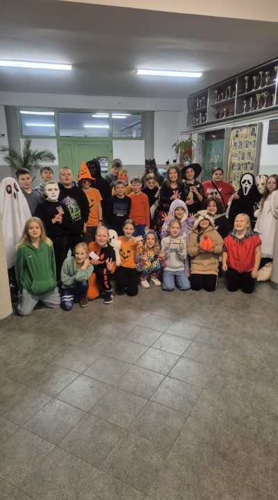 Nocny Halloween dla klas czwartych Wieczorem 30 października 2024 szkoła została opanowana przez wyjątkowe postacie. Uczniowie w przebraniach spędzili czas razem na oglądaniu filmu.