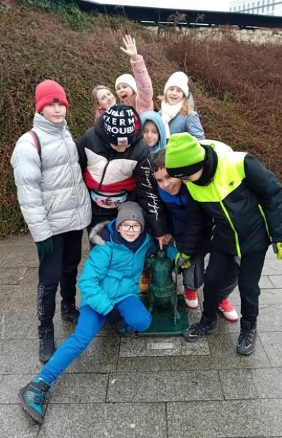 Spacer klasy 5b ze smokami Uczniowie klasy 5b podczas spaceru po Krakowie.